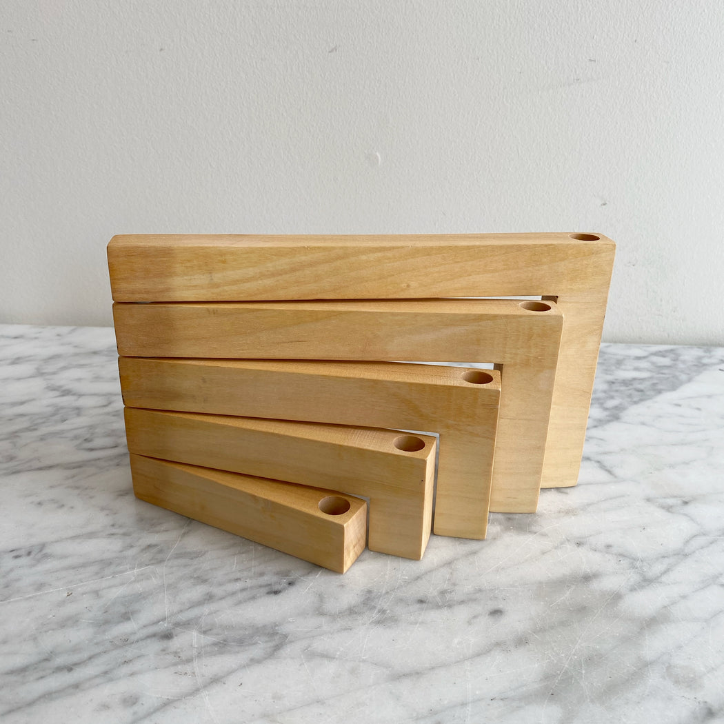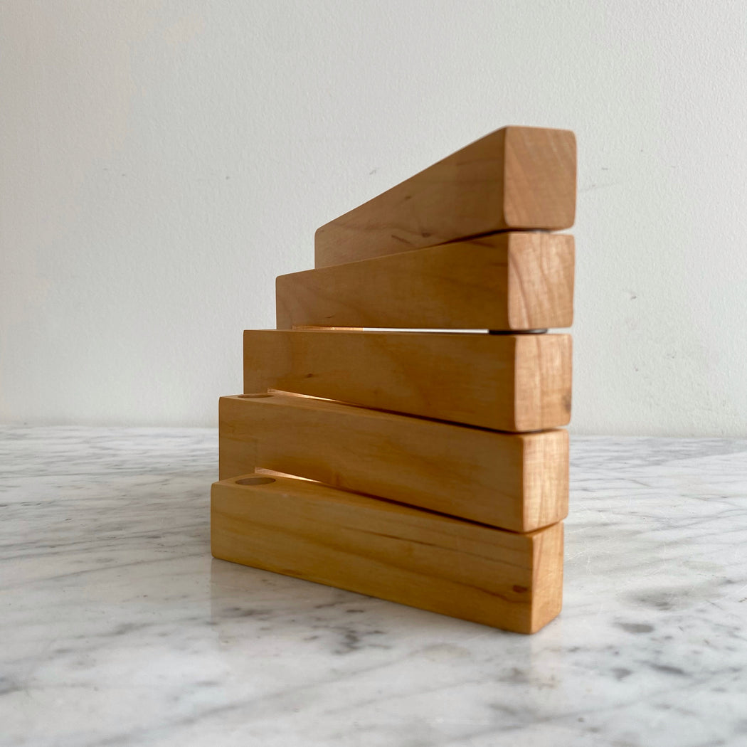 Cool, handcrafted articulating wood candle holder with five arms! Can be arranged in multiple ways...