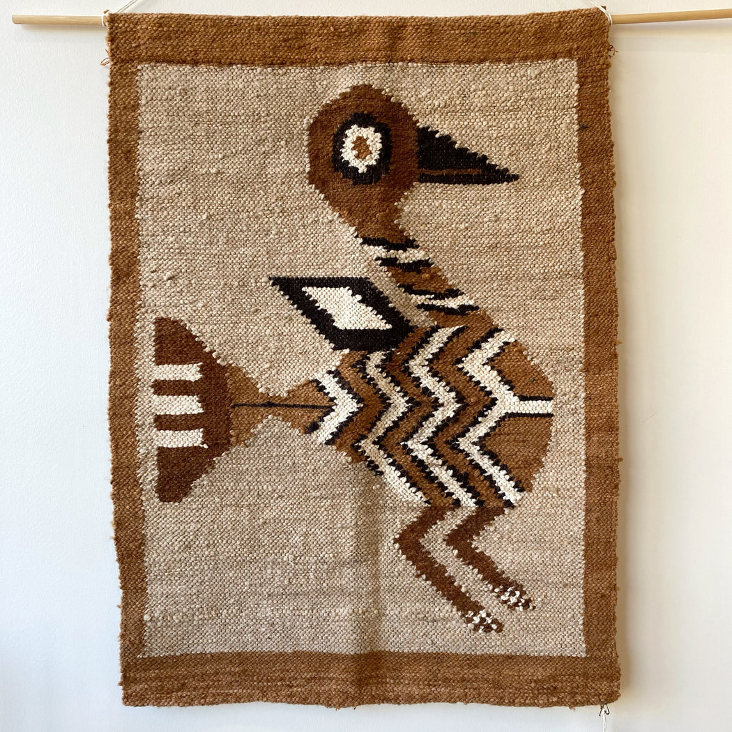 Vintage Woven Wall Hanging / Textile with Bird