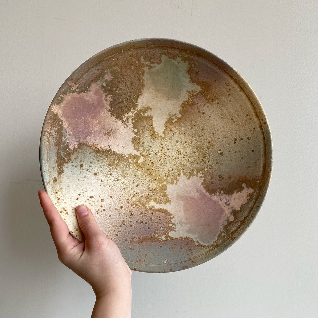 XL Found Vintage “Cosmic” Pottery Platter, 12”