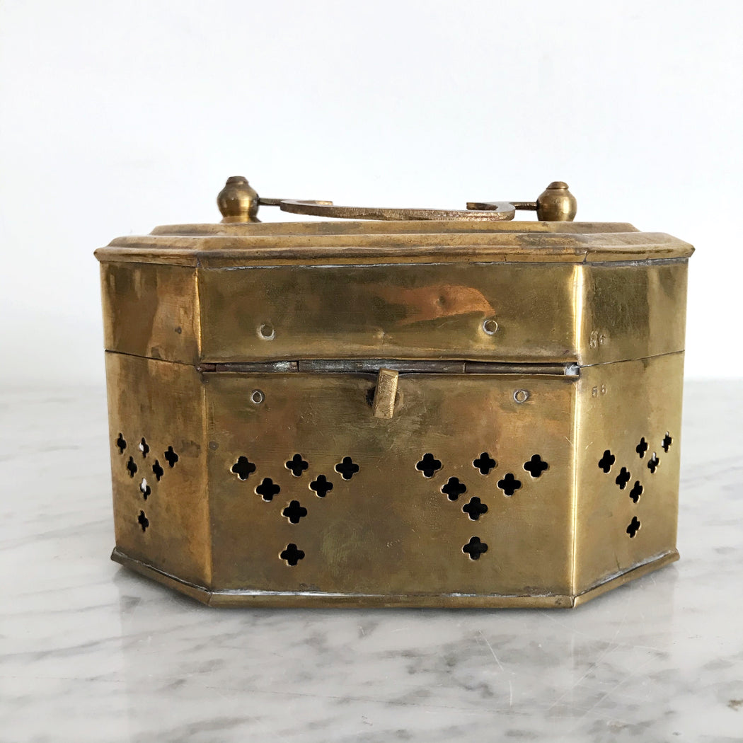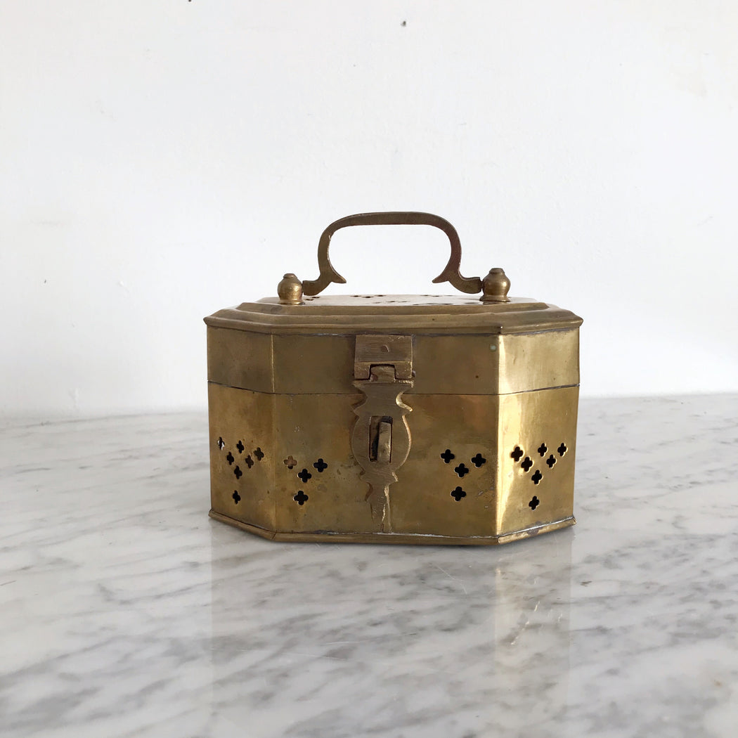 Condition: Beautiful natural patina consistent with vintage brass pieces, and wear inside. Fully functioning, opens and closes well.
